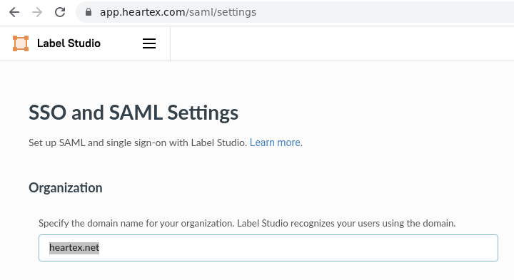 2. Select Manual Enter, enter URLs from the Label Studio Enterprise SAML SSO page.